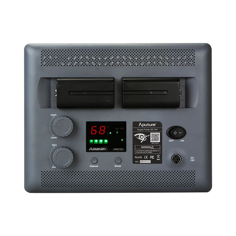Aputure Amaran HR-672C is a compact LED panel designed for photo and video lighting with adjustable color temperature. Suitable for interviews, small studio setups, and portable location work.