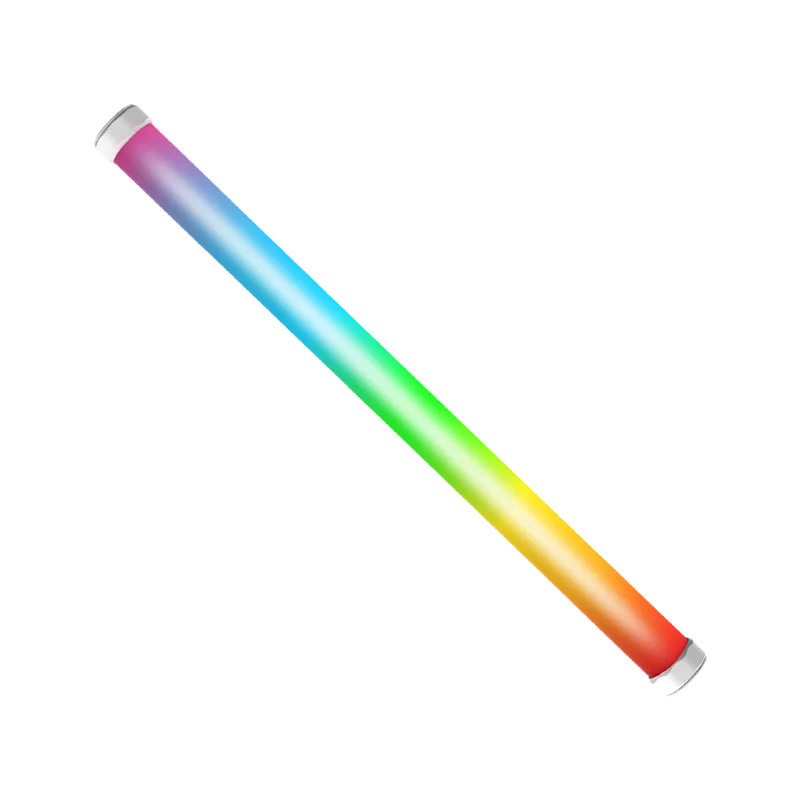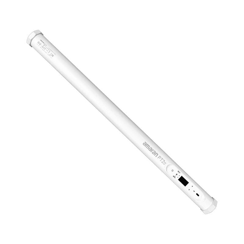 Aputure Amaran PT2c LED tube light with a length of 600 mm features eight independently controllable lighting zones for creative lighting installations. Color temperature ranges from 2700K to 10000K with full RGB spectrum support. High color accuracy ratings TLCI ≥98, CRI ≥95, CQS ≥96 allow use in video, film production, and live streaming. Maximum brightness reaches 195 lux at 1 m at 5600K. Control is available via Sidus Link app or onboard controls. Built-in battery provides up to 170 minutes of operation at full brightness. Both ends of the tube feature 3/8″ threaded mounting points.