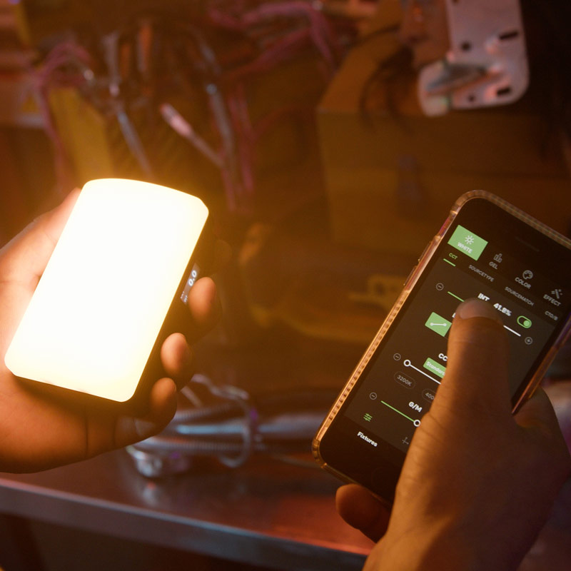 The unit includes 15 effects for simulating off-camera actions, such as “Faulty Bulb”, “Fireworks”, and “Emergency Vehicle Beacon”. Powered by a built-in 4200 mAh battery charged via USB Type-C. A full charge provides up to 2 hours at full power. Diffusers and a honeycomb grid are included to soften and shape the beam.