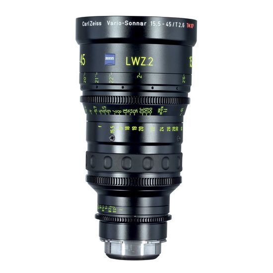 ARRI Zeiss LWZ.2 15.5-45 T2.6 PL-mount ultra-light compact zoom matches the color of the ARRI / Carl Zeiss Cine lineup. The lens weighs only 2 kg, allowing use on Steadicams. It features T* XP anti-reflective coating for strong performance against flare and backlight.