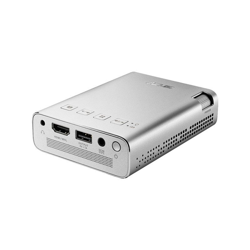 Asus ZenBeam E1 portable projector is a self-contained multimedia system for watching content and for use as a projection monitor for a PC or game console. Maximum image size is 120″ diagonal when placed 3.7 m from the screen or projection surface. Playback is available via HDMI input or USB port from a flash drive or mobile device; in the latter case, the smartphone or tablet can be charged simultaneously. Power is supplied by a built-in battery; a full charge provides up to 5 hours of operation. Audio plays through the built-in speaker or via a 3.5 mm mini-jack for headphones or an external audio system. Native projection resolution is 854×480, with input support up to Full HD 1920×1080.