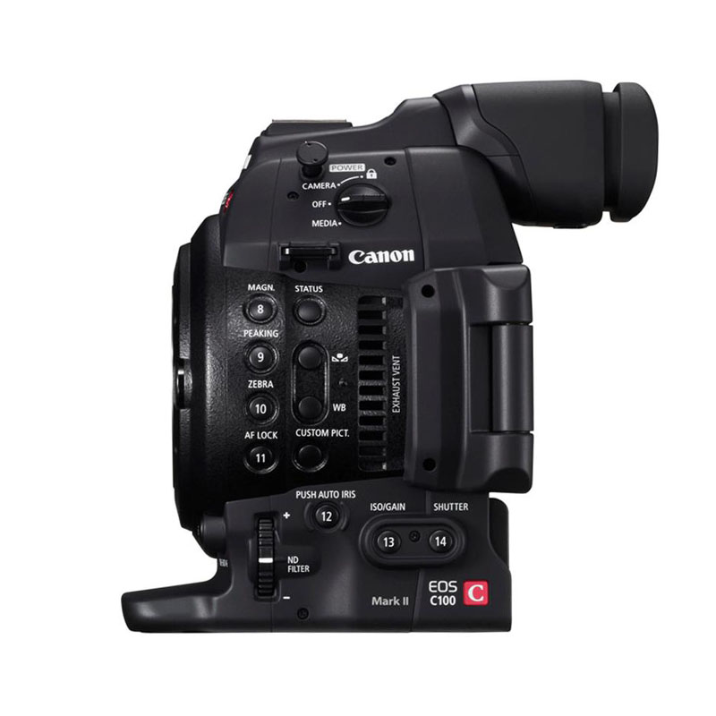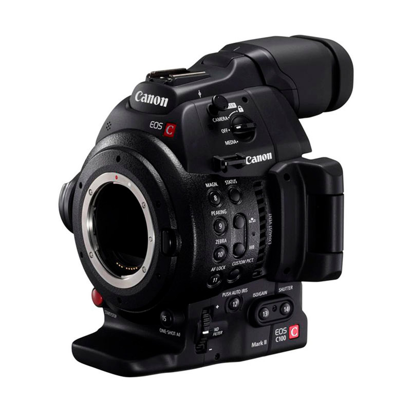 Canon EOS C100 Mark II digital cinema camera is easy to operate and features an 8.3 MP Super 35 CMOS sensor, Dual Pixel CMOS autofocus, and face detection autofocus. Canon Log gamma provides a 12-stop dynamic range (800%) for maximum flexibility in post-production, while the Wide Dynamic Range function enables faster workflows by delivering wide dynamic range video without color grading. The Super 35 8.3 MP CMOS sensor delivers Full HD images with ISO sensitivity up to 102400 and very low noise. Combined with advanced video processing, rolling shutter artifacts are significantly reduced.