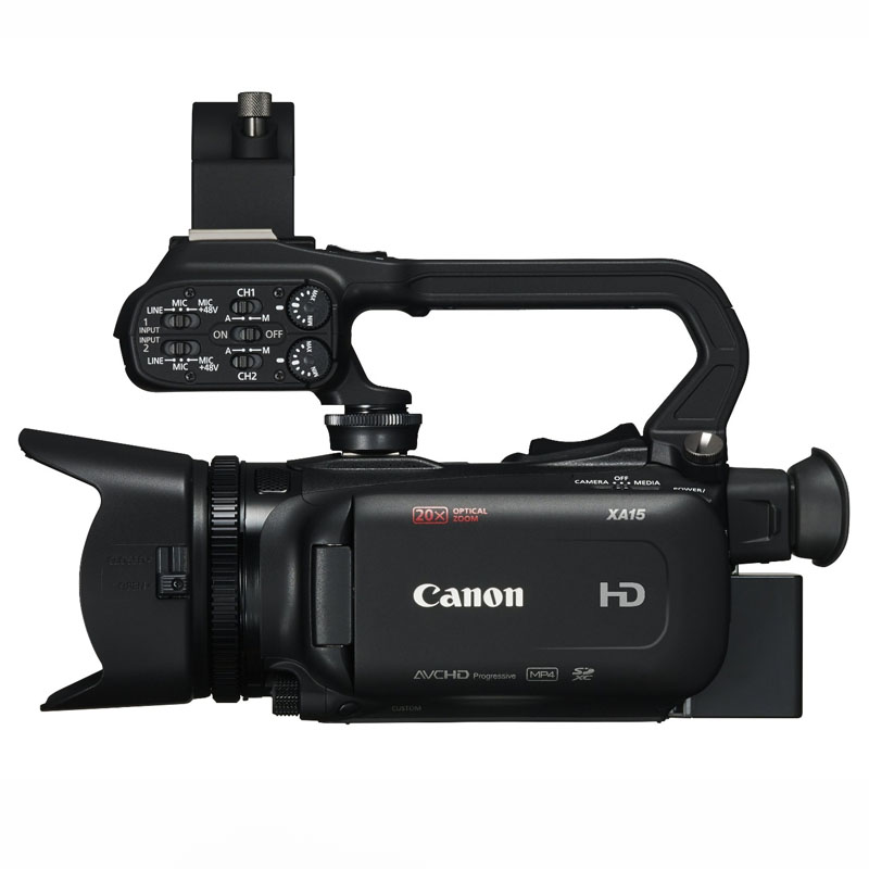Canon XA15 is a compact Full HD camcorder with strong optics, wide dynamic range, and a 20× optical zoom. Its small size makes it easy to carry, while flexible features allow shooting a wide range of events. With the HD CMOS Pro sensor and Canon 20× optical zoom lens (35mm equivalent: 26.8–576 mm), Canon XA15 is a versatile tool for videographers. An advanced circular aperture helps produce pleasing, natural-looking images. The Canon HD CMOS Pro sensor and DIGIC DV4 processor improve low-light performance and deliver Full HD 50P video at 35 Mb/s with a 600% wide dynamic range.