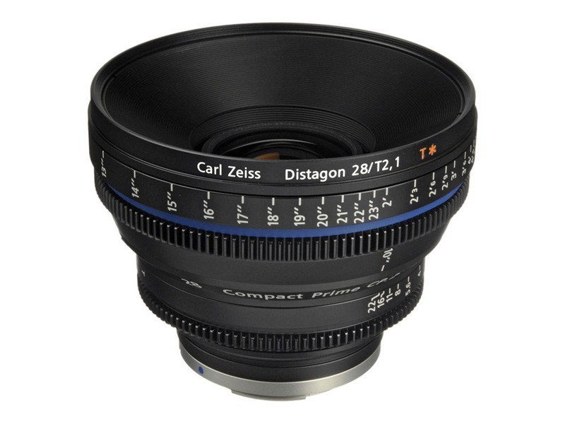 Carl Zeiss CP.2 28mm T2.1 (EF) is a cinema prime with T2.1 aperture, long focus throw, 14-blade iris, and de-clicked stepless iris control with uniform CP.2 housing.