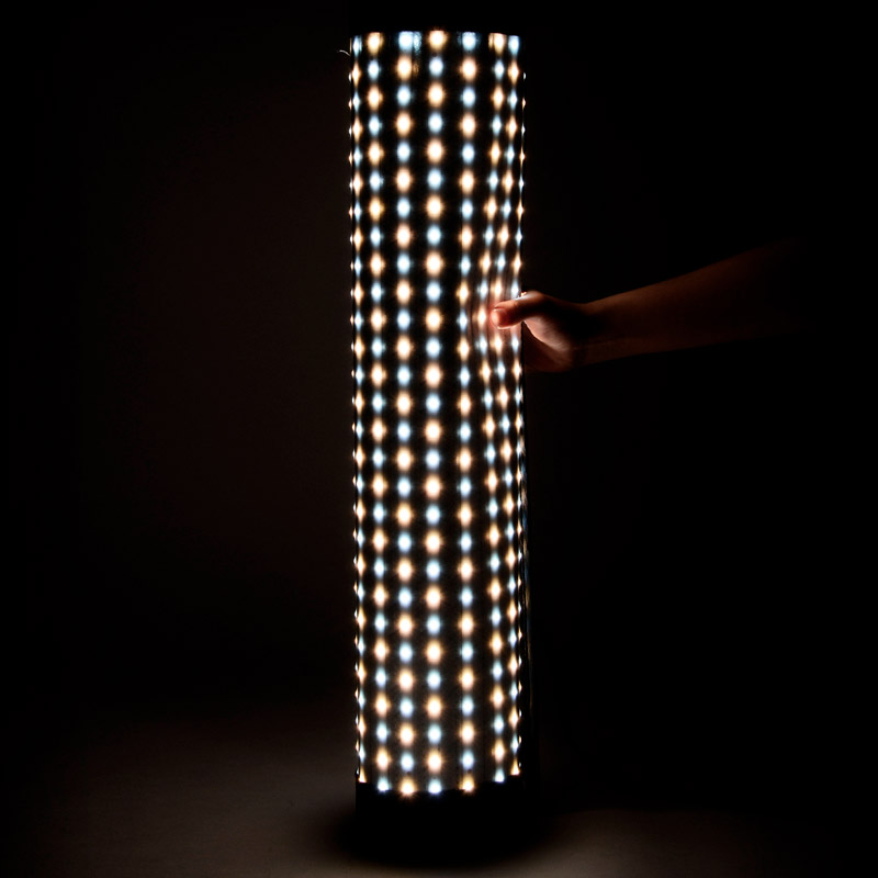 Godox FL150R BiColor flexible LED panel measuring 30 × 120 cm offers adjustable color temperature from 3300K to 5600K with high color accuracy (TLCI ≥98, CRI ≥96). Suitable for photo and video production, film work, and live streaming. The flexible design allows shaping and installation in confined spaces.