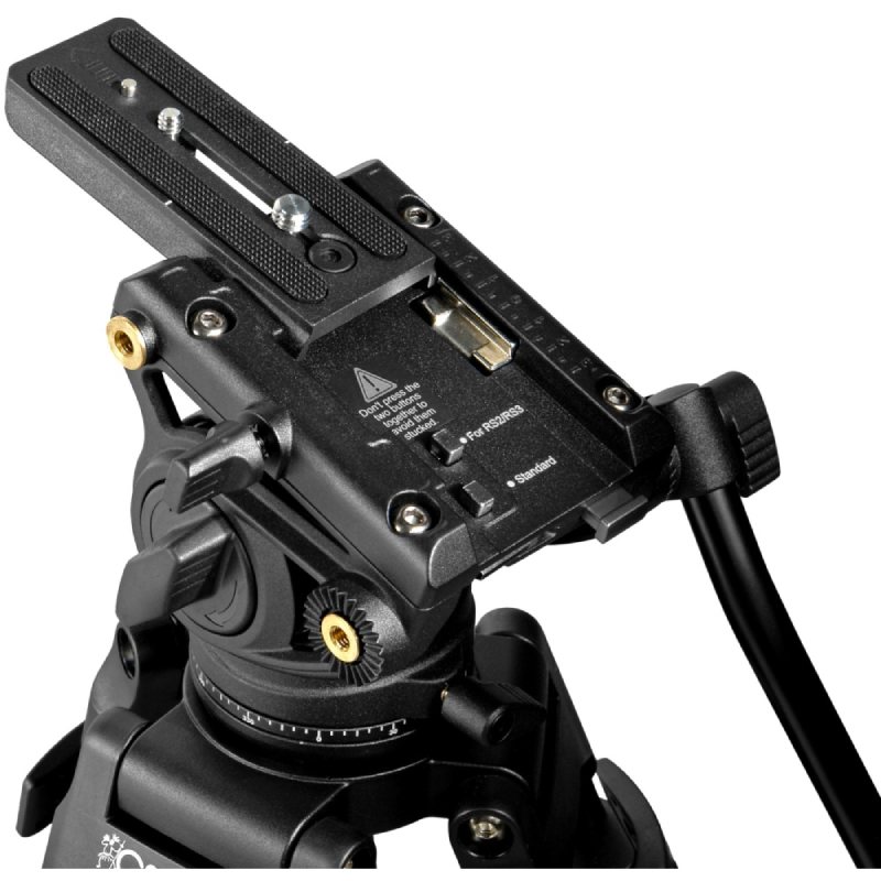 GreenBean HDV Elite 419X video tripod is designed for fixing a camera position during video shooting with digital camcorders or DSLR cameras. Compatible with 1/4″ or 3/8″ mounts and supports cameras up to 4 kg. Maximum height: 188 cm, minimum working height: 88.5 cm. Bowl diameter: 75 mm. Suitable for location videographers needing reliable support and smooth horizontal/vertical panning. A fixed counterbalance system helps balance cameras with long lenses, returning smoothly to the neutral position on the tilt axis. The quick-release plate includes 1/4″ and 3/8″ screws (included), a spring-loaded pin, and an anti-slip insert. The plate slides forward/back and locks in position. Plate size: 50×110 mm.