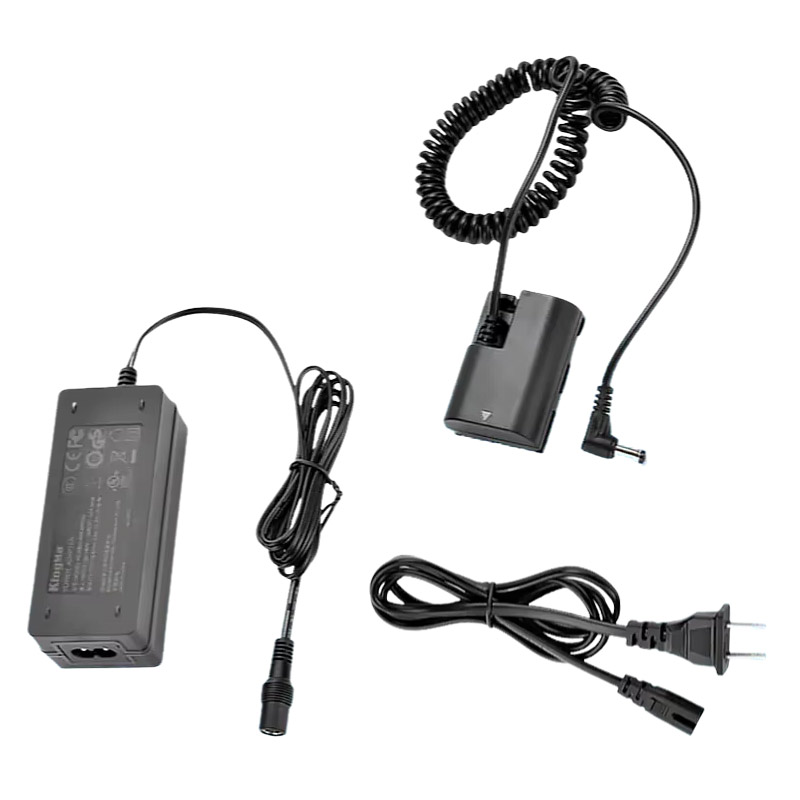 Kingma AC adapter for Sony NP-FW50 replaces the camera battery with a dummy NP-FW50 and provides continuous mains power for compatible Sony cameras. Supplied with the dummy battery and AC adapter.