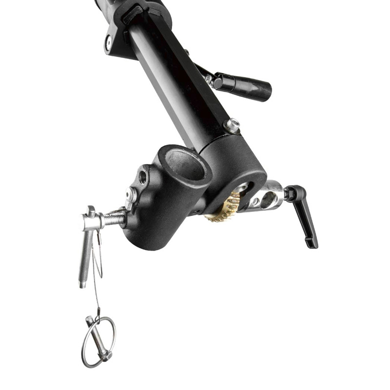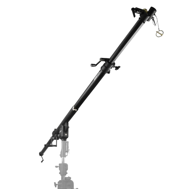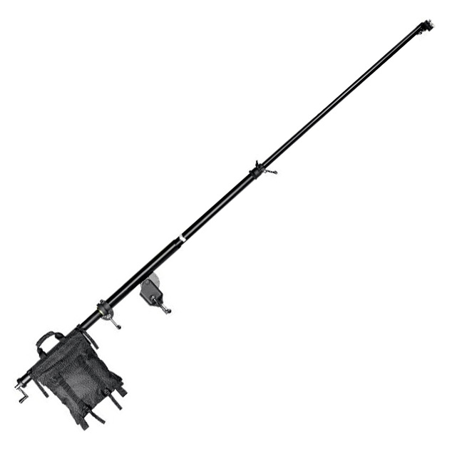 Kupo KCP-636B Big Boom is designed to support fixtures weighing up to 6 kg at a maximum extension of 363 cm. A control handle allows adjustment from 30° upward to 90° downward. The boom weighs 15 kg and mounts on a stand with a 28 mm receiver. The manufacturer recommends using the Kupo 483BT Wind Up stand for optimal performance.