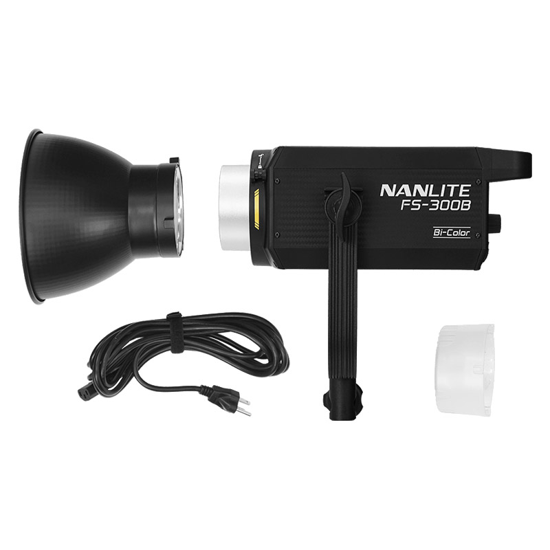 Included: Nanlite FS-300B, power cable, stand locking screw, protective cap, transport bag.