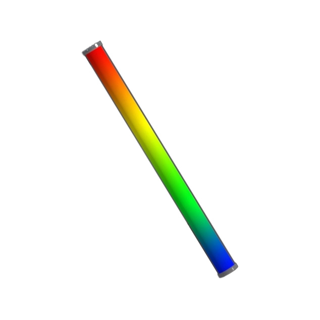 The tube can also be controlled via the LCD display and buttons on the housing. A Wi-Fi interface is additionally implemented, allowing use within professional lighting system networks. Wired DMX is also supported. With a full battery charge, maximum-output runtime reaches up to 2 hours 45 minutes. Tube length is 50 cm, diameter 40 mm, weight approx. 0.7 kg.