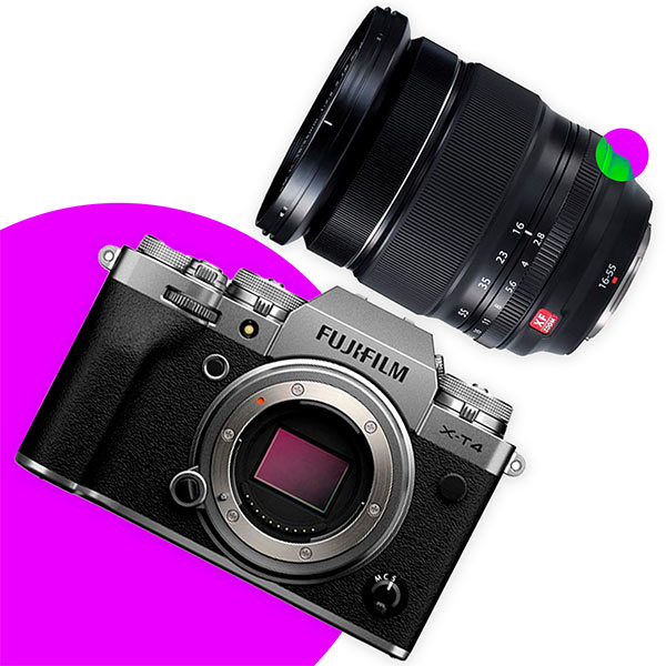 Fujifilm X-T4 mirrorless camera with a 26.1 MP APS-C sensor and Fujifilm X mount, featuring ultra-fast autofocus down to 0.02 seconds and an in-body image stabilization (IBIS) system. The camera records 4K video at up to 60p in 10-bit and supports high-speed Full HD video recording at up to 240p.