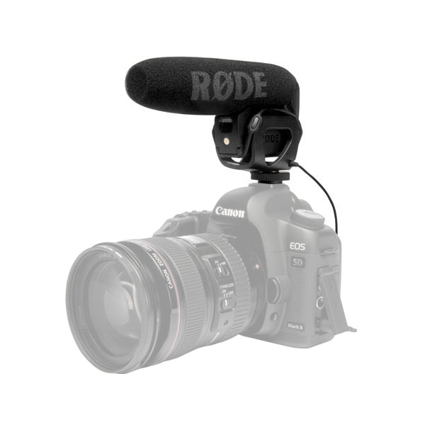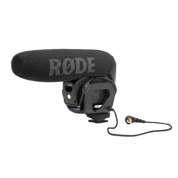 RØDE VideoMic Pro is a compact shotgun microphone designed for digital video cameras, DSLR cameras, and portable recorders. It uses a condenser capsule that delivers a mono signal to both left and right channels. The supercardioid pattern provides strong front focus while rejecting side and rear noise. The microphone handles SPL up to 134 dB, is powered by a 9 V battery, and includes a switchable low-cut filter to reduce background noise such as air conditioners or traffic. It mounts easily to cameras via a standard shoe mount and connects via a stereo 3.5 mm minijack. Included: Rode VideoMic Pro with integrated minijack cable, windscreen, hot-shoe mount, box.