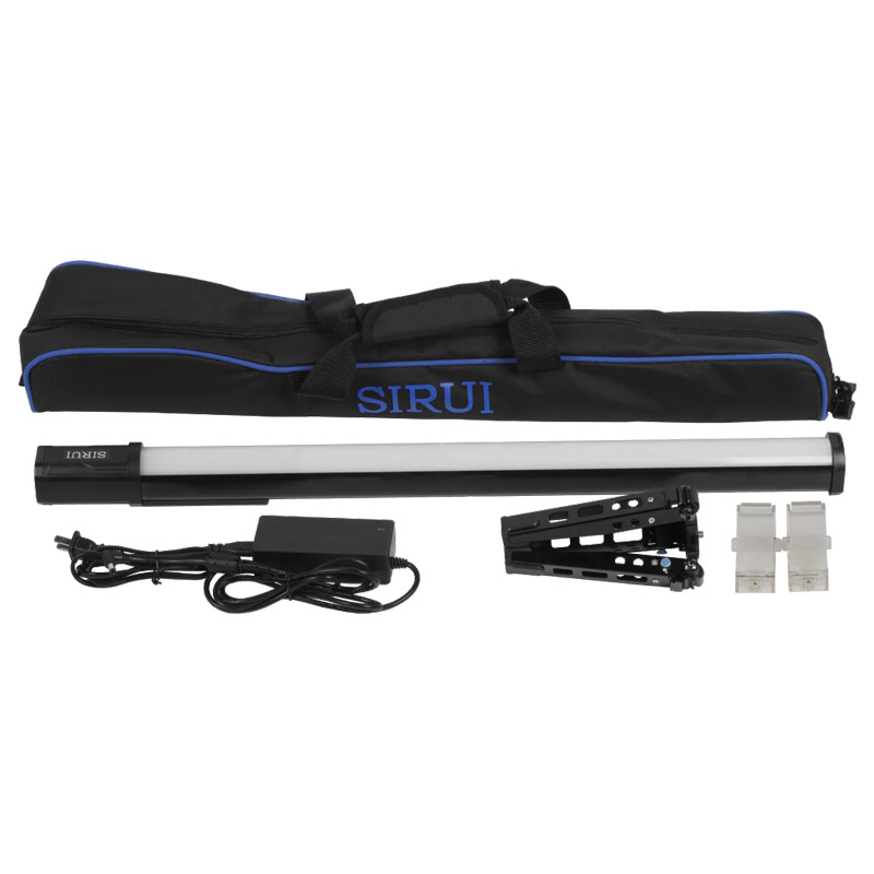 Included in the set: Sirui T120 Pro LED tube, AC power adapter, mini tripod, mounts (2 pcs), and carrying case.