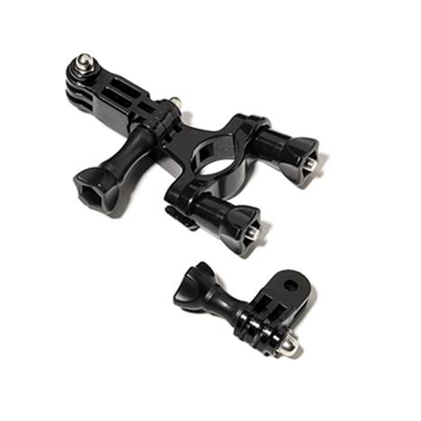 This mount is used for attaching to ski poles, bicycle handlebars, or any other tube with a diameter from 19 to 35 mm. An additional joint between the clamps with a locking screw allows adjusting the required shooting angle and camera position.