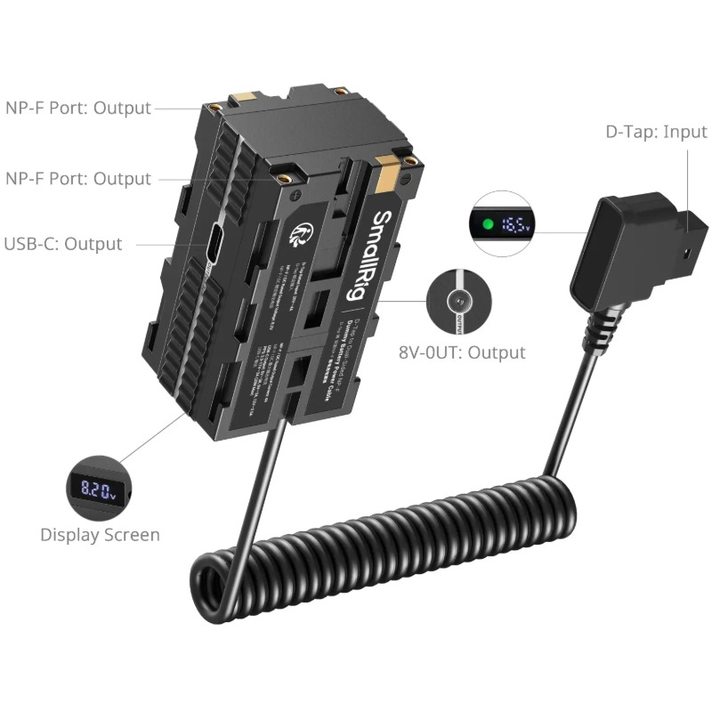 Included: SmallRig D-Tap to Dual-Sided NP-F Dummy Battery Power Cable 4884 power adapter.