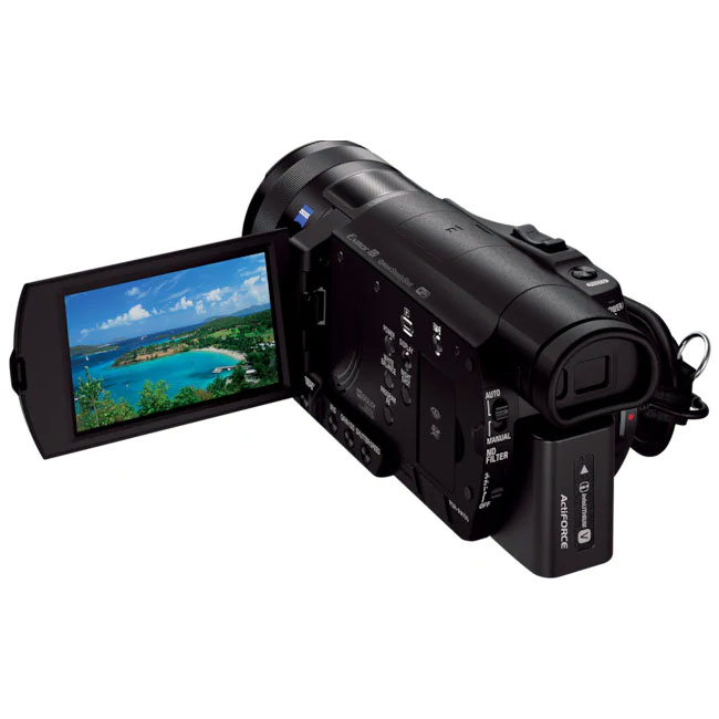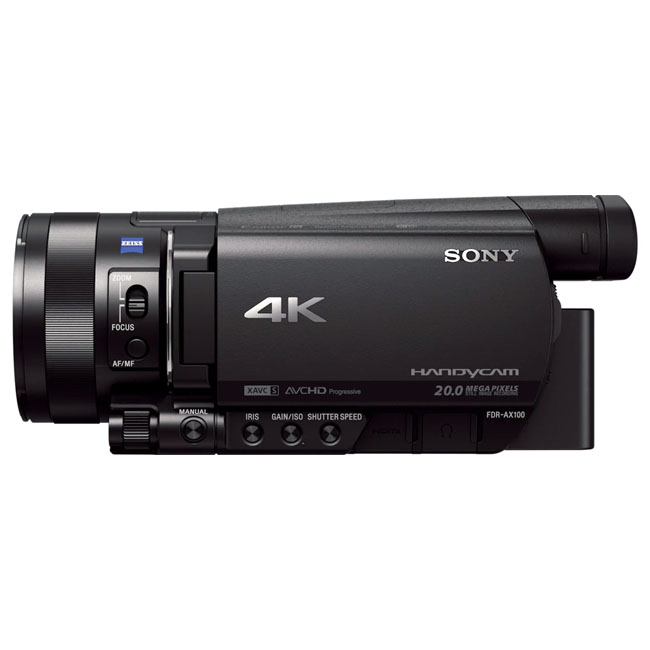 Sony FDR-AX100 camera features a 29 mm Zeiss Vario-Sonnar T* wide-angle lens optimized for 4K and a 12× optical zoom. The camera uses an Exmor R CMOS sensor approximately 4.9× larger than typical sensors in portable camcorders, providing higher sharpness, reduced noise, and improved background blur. Edge sharpness is maintained using an 11/17-element lens group with aspherical and low-dispersion elements. The BIONZ X processor improves realism and adds functions that benefit from faster processing. Recording uses XAVC S for 4K/HD. HD recording up to 50 Mb/s supports high-quality capture for fast action. Playback of all data in all modes is not guaranteed with MP4 playback devices/software.