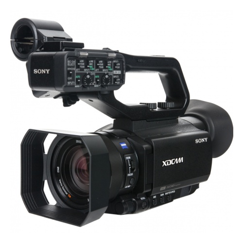 Sony PXW-X70 compact functional camcorder is a professional solution for event and corporate shooting. High resolution: a 14.2 MP CMOS sensor provides sharp, smooth video even in dynamic scenes. Carl Zeiss lens: delivers high image sharpness and up to 24× zoom without loss of quality. Customizable functions: compact, lightweight body provides wide automatic and manual control options, recording to either of two memory cards, control of three ND filters, and more. Remote control: Sony PXW-X70 supports remote control from a mobile device via Wi-Fi, with an app for adjusting framing, spot focus, aperture, and field parameters.