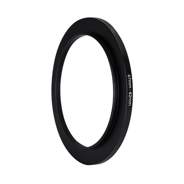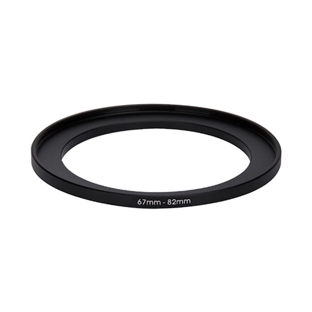 Step-up ring 67–82 mm adapts a 67 mm lens filter thread to accept 82 mm filters.