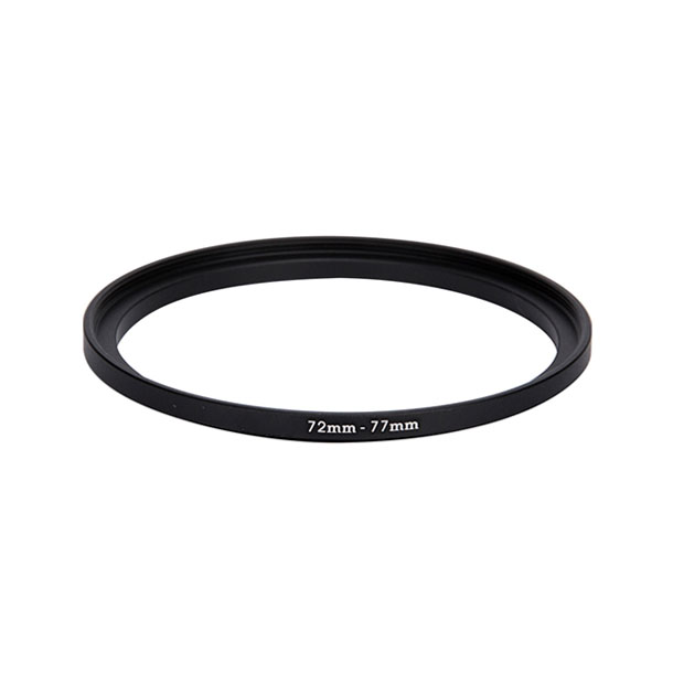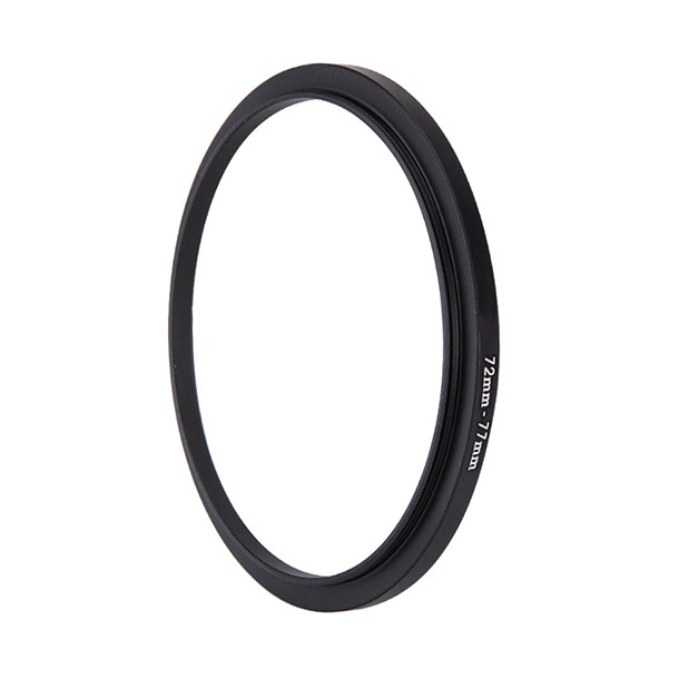 Step-up ring 72–77 mm adapts a 72 mm lens filter thread to accept 77 mm filters.