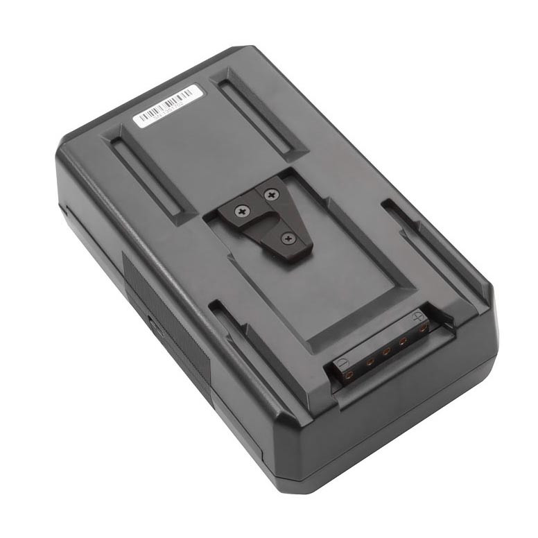 The battery is equipped with a D-Tap connector and an LED charge indicator.