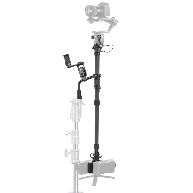 Included: bracket, column, NATO clamp and rail, vest, safety cable, 2 safety attachments for vest, arm support, additional Tilta back support, stabilizer base, 1/4″-20 adapter base, D-Tap to Lemo and Lemo 2-Pin cables, base mounting bracket, 1/4″ screws (5 pcs), hex key, monitor bracket, wireless controller and receiver for RS2, smartphone holder, V-Mount plate with mounting hardware, 5/8″ adapter sleeve, straps (2 pcs), transport case.
