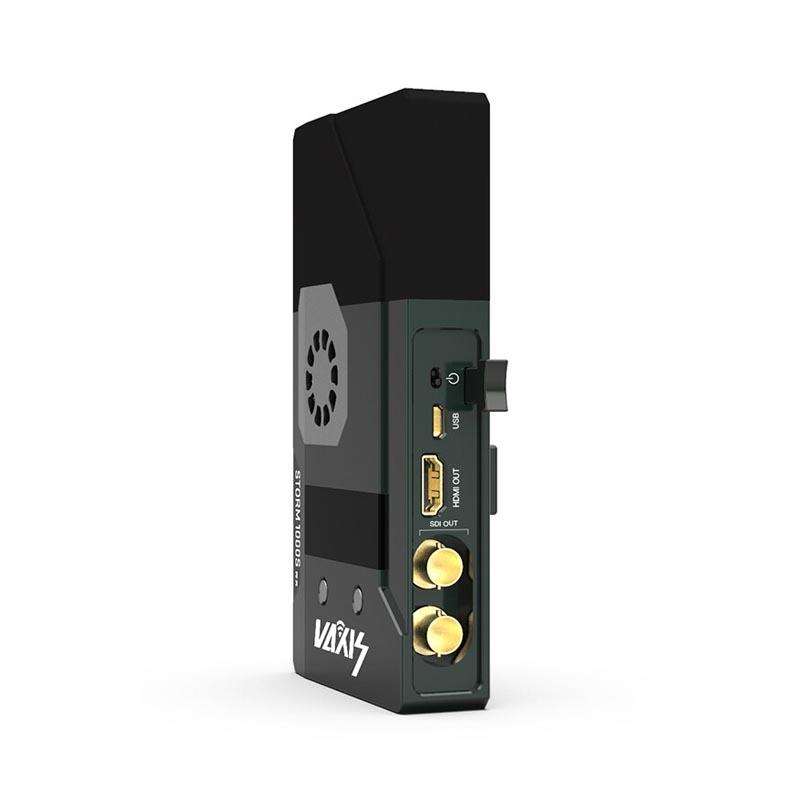 Additional receiver for the Vaxis Storm 1000s kit receives video from the transmitter at distances up to 350 m with zero latency and up to 1080p/60 quality. The receiver features: two SDI outputs, one HDMI output, one 2-pin Lemo power input, and a microUSB port.